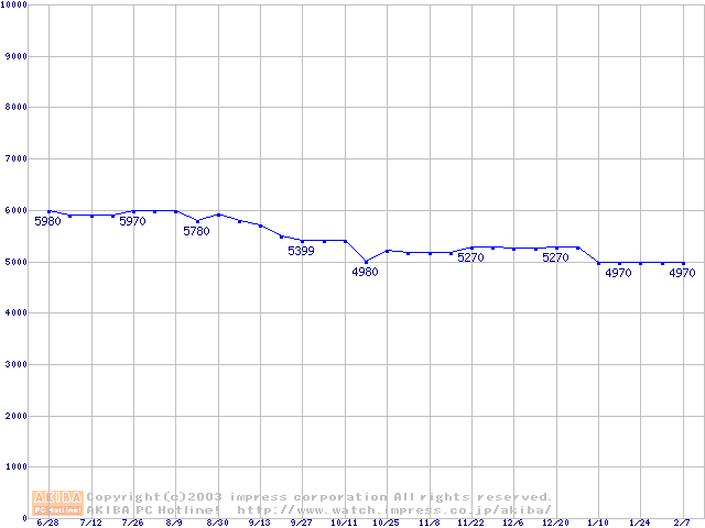 | [↑前グラフ]: | Barracuda 5400.1 (5400rpm,UltraATA/100,2MB,FDB)の最安値推移 |