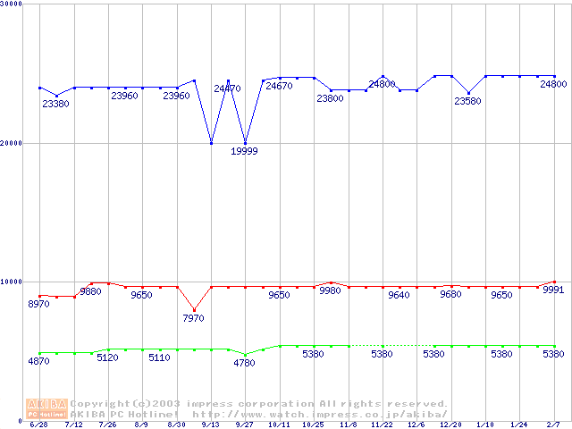 | [↓次グラフ]: | PC800-40 DRDRAM RIMM ECC対応の最安値推移 |