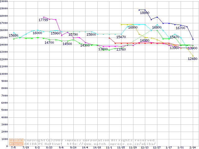 | [↓次グラフ]: | 2.5インチHDD 50GB~60GB以下(9.5mm厚,7200rpm)の最安値推移 |