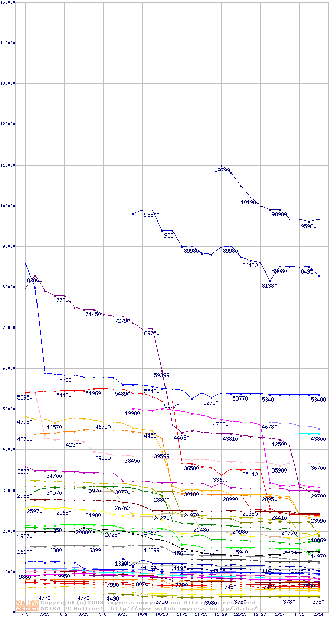 CPU主要製品の最安値推移