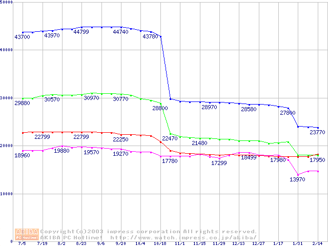 Socket 478・FSB 400MHzの最安値推移