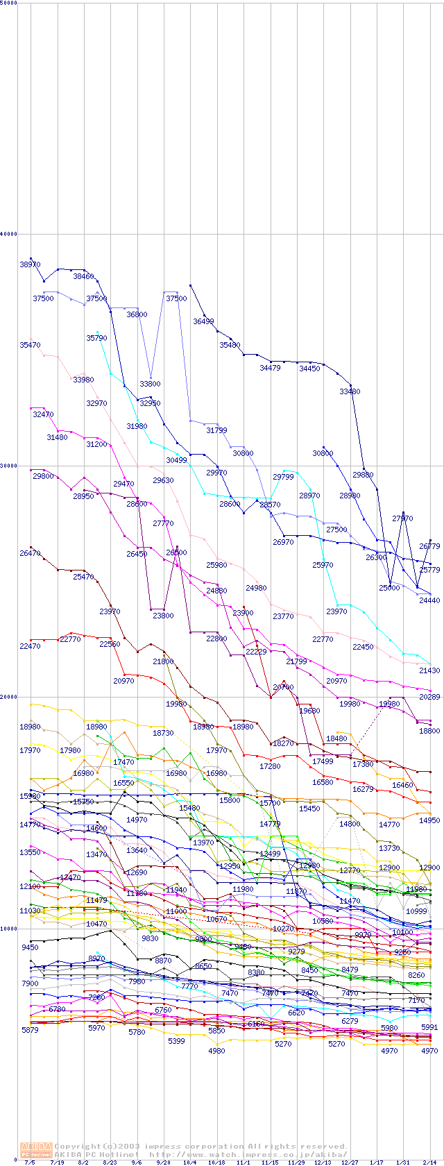※製品名をクリックすると個別のグラフを表示します ※点線部は販売店が確認できなかった、または調査データがないことを示します |
