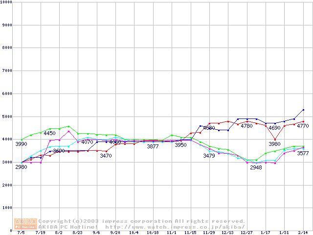 256MBモジュールの最安値推移