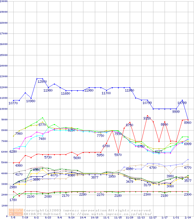メモリ主要製品の最安値推移