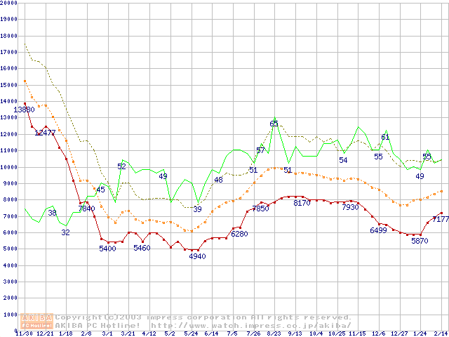PC2700(DDR333) DDR SDRAM DIMMの最安値推移
