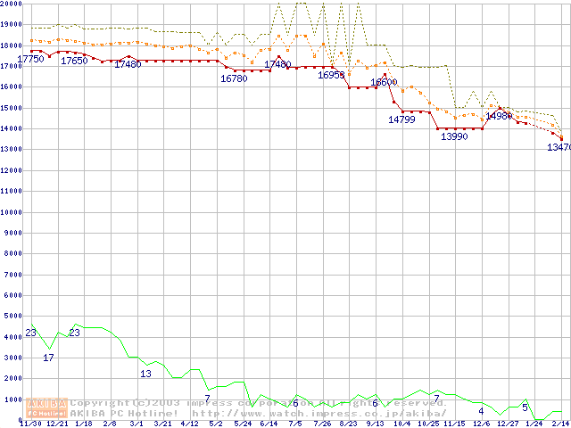 Socket 478 (micro-PGA,FSB 400MHz,L2 512KB,Northwood)の最安値推移