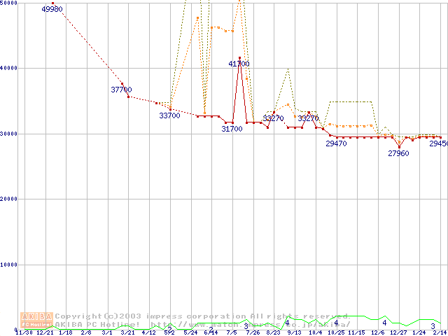 PC2700(DDR333) DDR SDRAM DIMM ECC対応 Registeredタイプの最安値推移