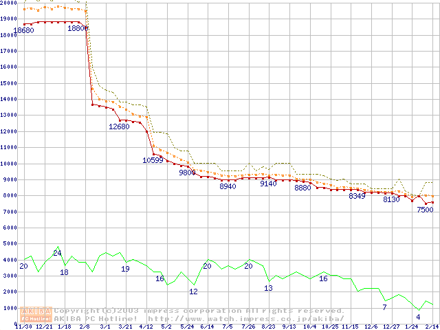 Athlon XP 2200+ (1.8GHz) リテールパッケージの価格推移