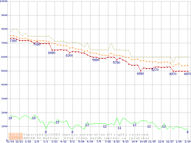 HDD主要製品の最安値推移