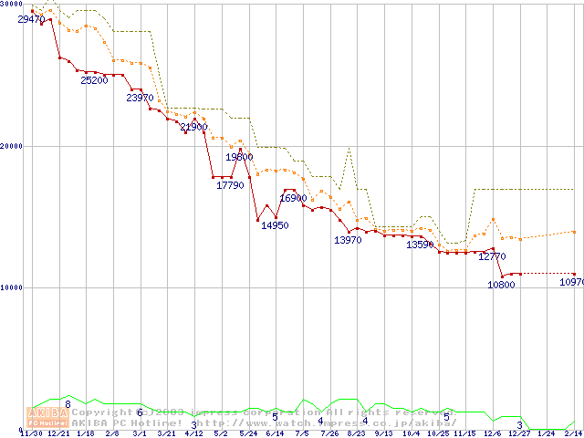 WD Caviar (7200rpm,UltraATA/100,2MB)の最安値推移