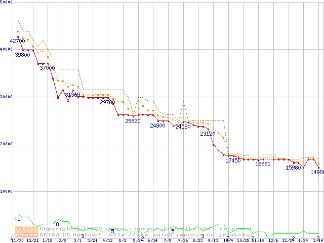 WD Caviar (7200rpm,UltraATA/100,2MB)の最安値推移