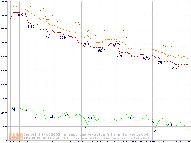 DiamondMax Plus 8 (7200rpm,2MB,UltraATA/133,FDB)の最安値推移