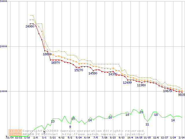 DiamondMax 16 (5400rpm,UltraATA/133,2MB,80GB/Platter,FDB)の最安値推移