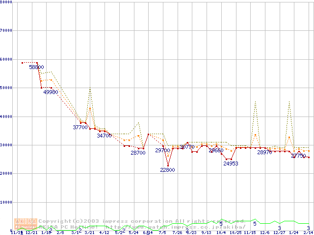 PC2700(DDR333) DDR SDRAM DIMMの最安値推移