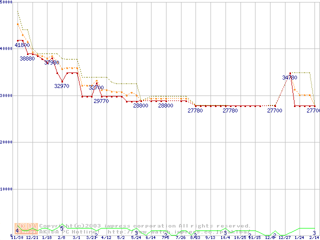 PC1066 DRDRAM RIMM4200(32bit)の最安値推移