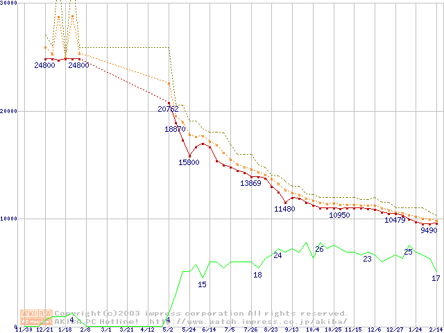 DiamondMax Plus 9 (7200rpm,8MB,SerialATA/150,FDB)の最安値推移