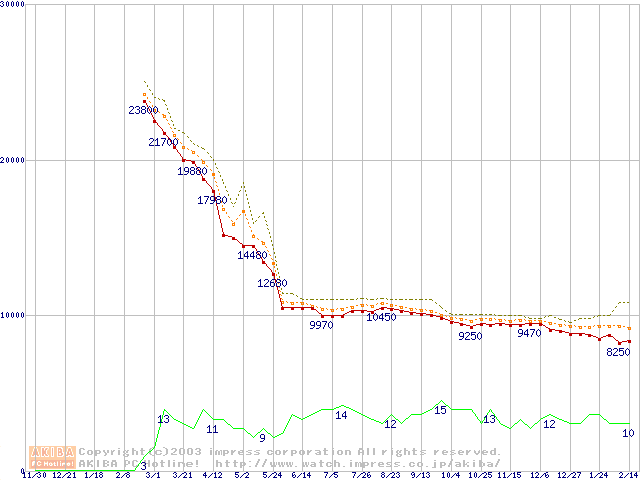 Socket A (OPGA,FSB 333MHz,L2 512KB,Barton)の最安値推移