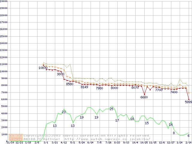 Athlon XP 2000+ (1.67GHz) リテールパッケージの価格推移