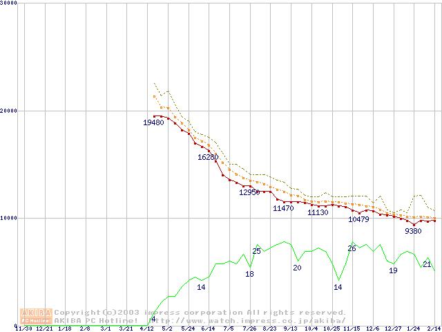 Barracuda 7200.7 (7200rpm,SerialATA,8MB,80GB/Platter,FDB)の最安値推移