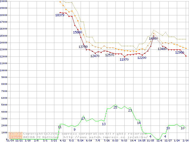 Travelstar 80GN IC25N040ATMR04 (40GB)の価格推移