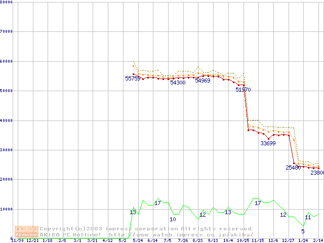 Athlon XP 3200+ (2.2GHz) リテールパッケージの価格推移