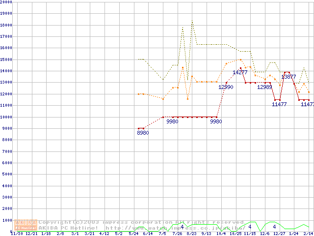 PC2700 DDR SDRAM 512MB(CL2.5) ECCの価格推移