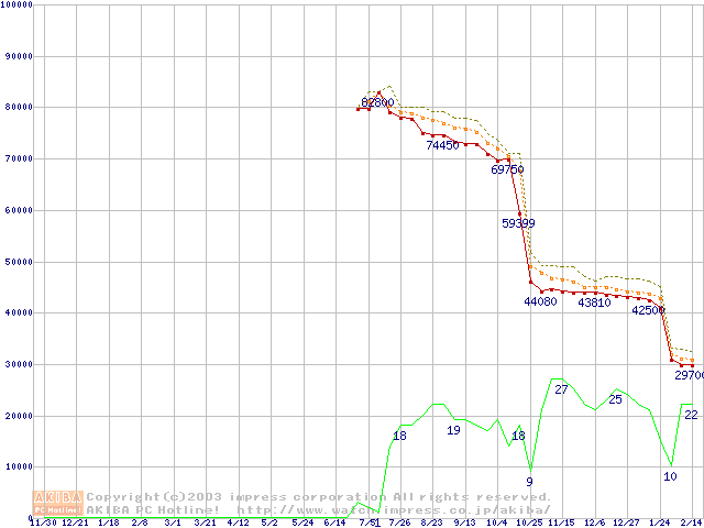 Socket 478 (micro-PGA,FSB 800MHz,L2 512KB,Hyper-Threading,Northwood)の最安値推移