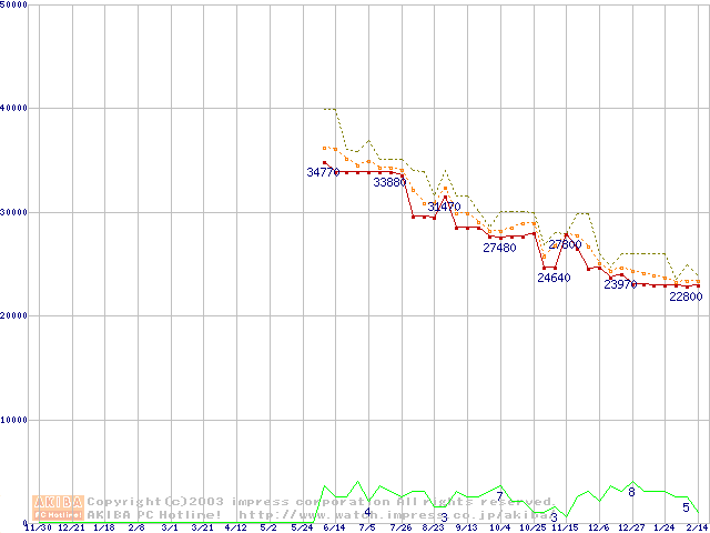 Athlon MP 2800+ (2.13GHz) リテールパッケージの価格推移