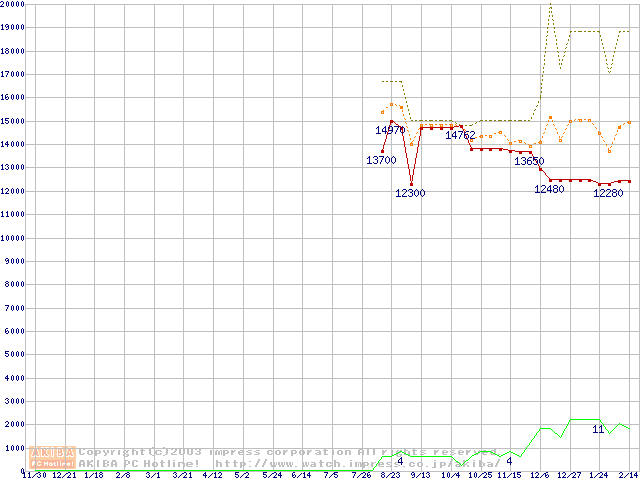 PC3200(DDR400) DDR SDRAM DIMM ECC対応 Registeredタイプの最安値推移