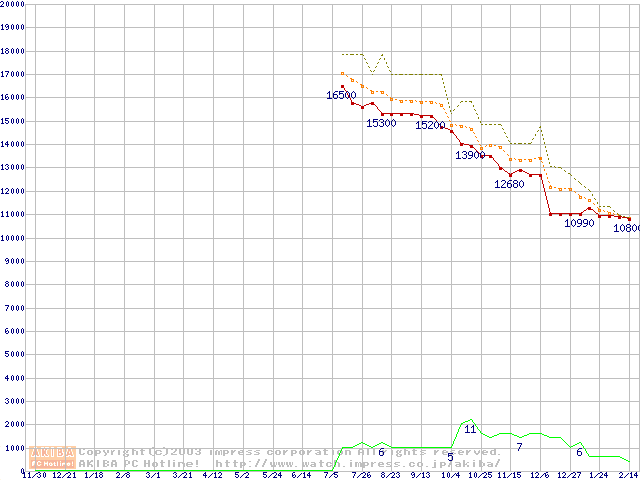 HDD主要製品の最安値推移