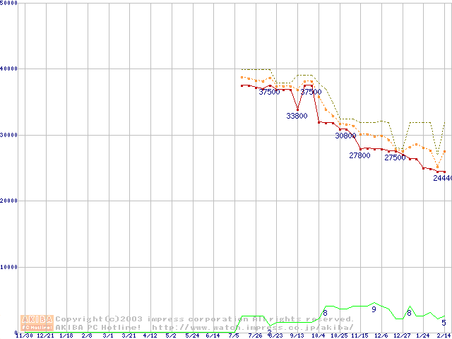 WD Caviar (7200rpm,SerialATA,8MB)の最安値推移
