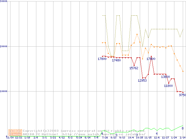 PC3700(DDR466) DDR SDRAM DIMMの最安値推移