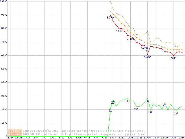 Deskstar 7K250 (7200rpm,UltraATA/100,FDB)の最安値推移