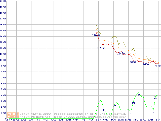 Deskstar 7K250 (7200rpm,UltraATA/100,FDB)の最安値推移