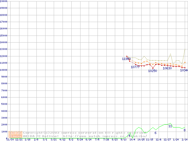 Socket A (OPGA,FSB 333MHz,L2 512KB,Barton)の最安値推移