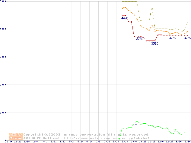Socket A (OPGA,FSB 266MHz,L2 64KB,Applebred)の最安値推移