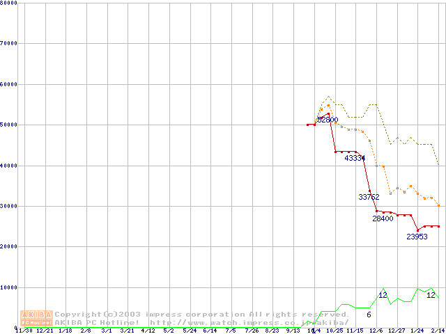 PC3200(DDR400) DDR SDRAM DIMMの最安値推移