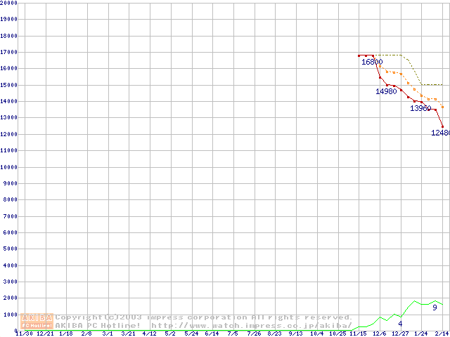 Momentusシリーズ (9.5mm,5400rpm,UltraATA/100,2MB,FDB)の最安値推移