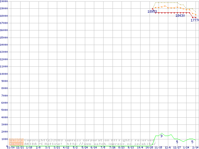 MHT20x0AHシリーズ (9.5mm,5400rpm,UltraATA/100,8MB,FDB,40GB/Platter,FDB)の最安値推移