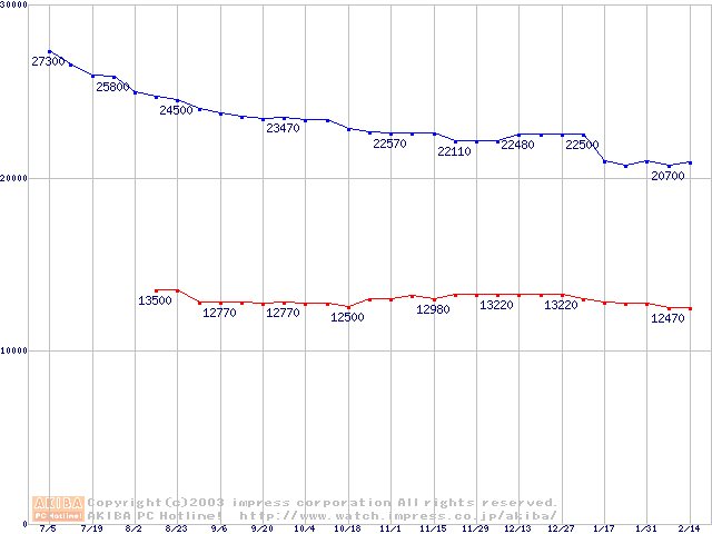 | [↑前グラフ]: | MKシリーズ (9.5mm,5400rpm,16MB,FDB)の最安値推移 |