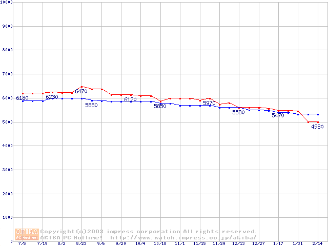 | Fireball 3 (5400rpm,UltraATA/133,2MB,FDB)の最安値推移 |