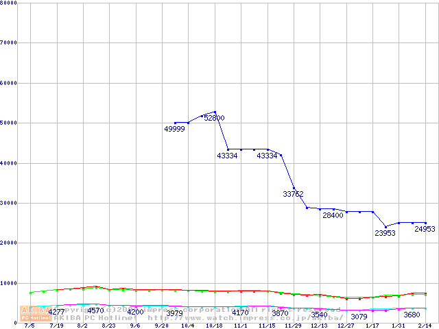 PC3200(DDR400) DDR SDRAM DIMMの最安値推移