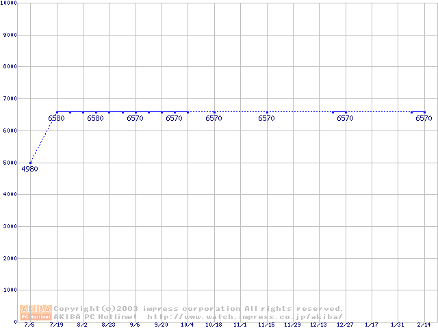 | [↓次グラフ]: | PC800-40 DRDRAM RIMMの最安値推移 |