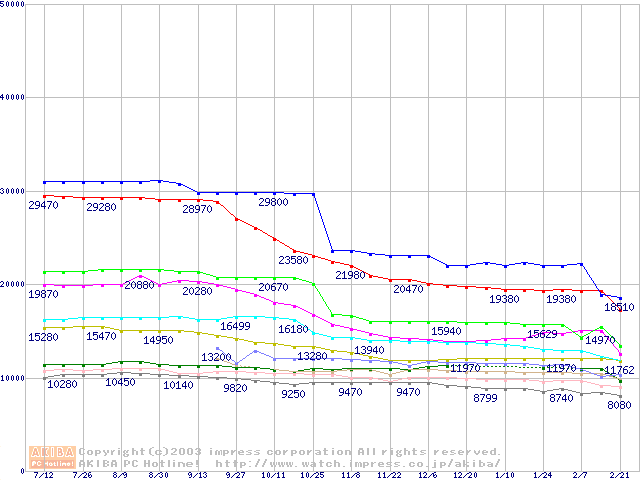 Socket A・FSB 333MHzの最安値推移