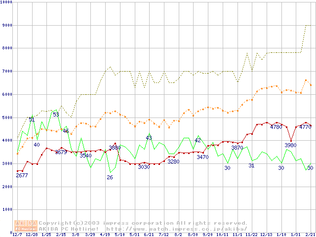 PC133 SDRAM DIMM CasLatency=3の最安値推移