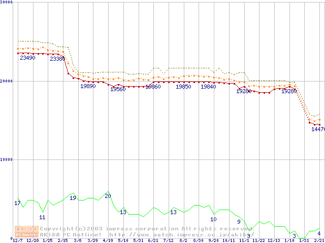 Socket 478 (micro-PGA,FSB 400MHz,L2 512KB,Northwood)の最安値推移