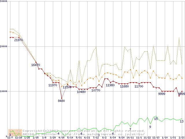 PC2700(DDR333) DDR SDRAM DIMM ECC対応 Registeredタイプの最安値推移