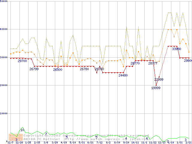 PC800-40 DRDRAM RIMM ECC対応の最安値推移