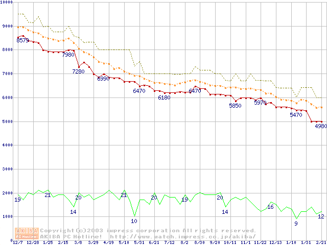 Fireball 3 (5400rpm,UltraATA/133,2MB,FDB)の最安値推移