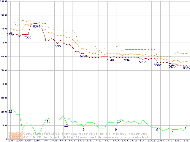 DiamondMax Plus 8 (7200rpm,2MB,UltraATA/133,FDB)の最安値推移